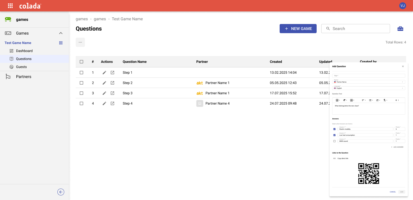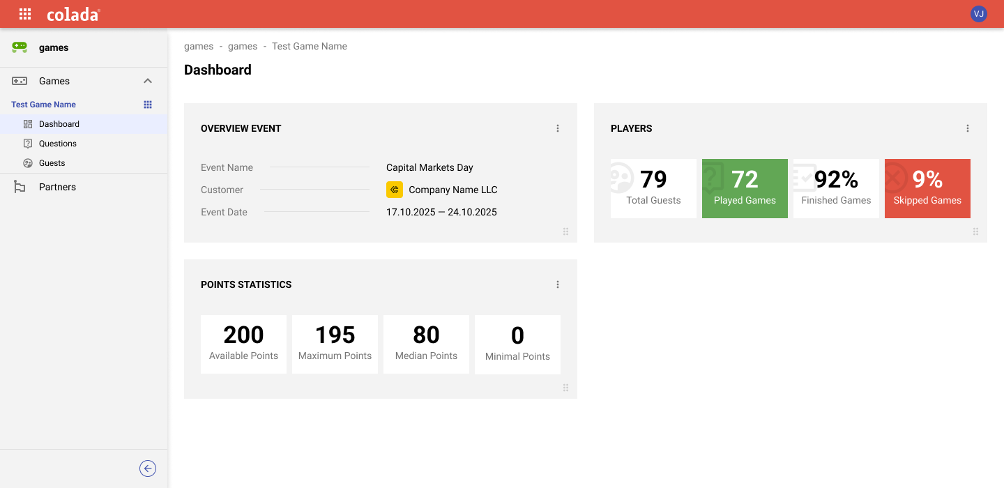 Like every colada application, colada.games is easy to set up and publish. The following functions are available in the back office: