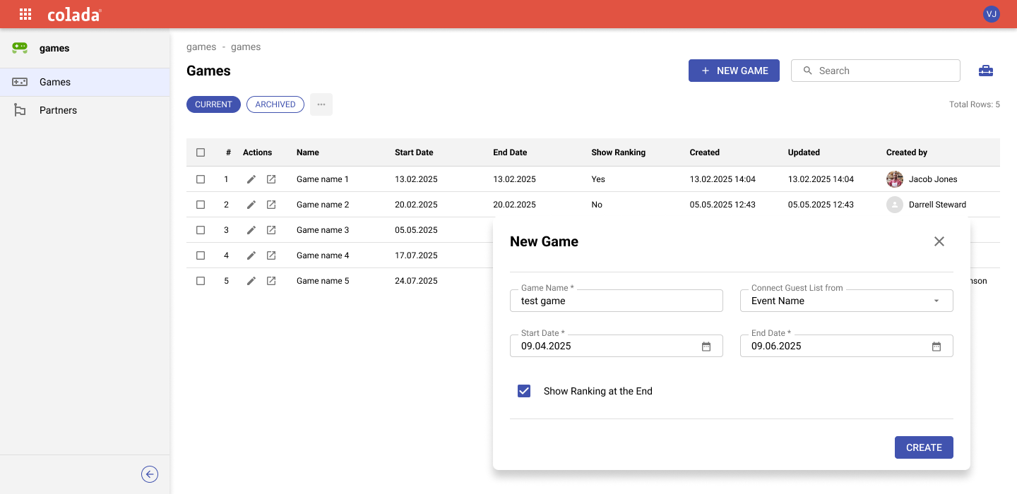 Become interactive with colada.games!