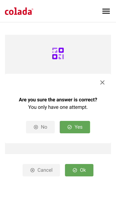 - Answer question: The app displays a question – guest clicks on the appropriate answer.