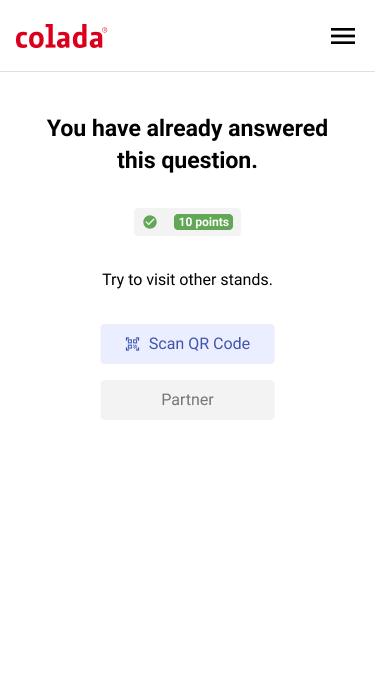 Anyone who incorrectly scans an exhibitor more than once will be notified of this. It is therefore not possible to turn an incorrect answer back into a correct one.