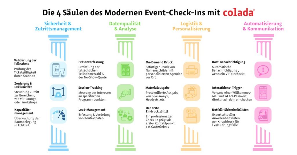The following four pillars show how colada utilizes this potential for a wide variety of requirements and event formats: