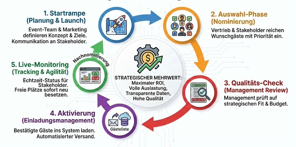 Als Entscheider wissen Sie: Ein Event ist kein Selbstzweck. Es ist ein strategisches Instrument zur Kundenbindung und Leadgenerierung. Doch dieses Instrument funktioniert nur, wenn der Nominierungsprozess der Gäste nicht dem Zufall überlassen wird.